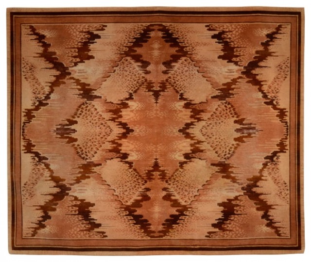 (Rug, Chinese Deco rug from 1st Dibs, Artwork (Portrait Of 'solskin' By Danish Painter Carl Meyer,denmark 1910), carved stone console (1st Dibs), light fixture 70's acrylic with brass)